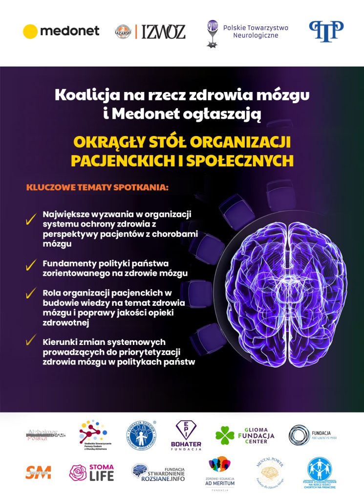 Wczoraj uczestniczyliśmy w pierwszych obradach okrągłego stołu Koalicji na Rzecz Zdrowia Mózgu, która łączy organizacje pacjenckie, społeczne, lekarzy oraz ekspertów systemu ochrony zdrowia.